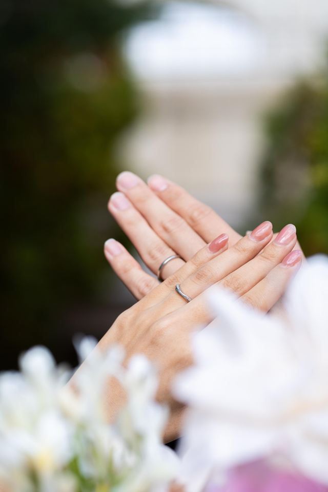 一生毎日つけるものなので、変色や変質の心配が少ないプラチナ950を選びました。また、仕事中も邪魔にならないよう、厚みを抑えたシンプルな平打ちのデザインにこだわりました。アフターケアについては、将来的に体型が変わっても使い続けられるよう、サイズ直しが永年無料であることや、表面の傷を磨き直してくれるクリーニングサービスが充実しているかを重視して選びました。